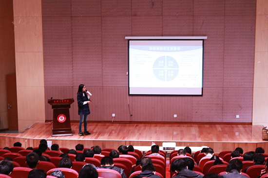 在講座上,劉老師通過列舉各高校實(shí)驗(yàn)室安全事故,讓大家認(rèn)識(shí)到實(shí)驗(yàn)室安全的重要性。她還談及了實(shí)驗(yàn)室內(nèi)可能遇到的主要危險(xiǎn)、事故、相應(yīng)的防范要點(diǎn)及應(yīng)急手段等內(nèi)容。并發(fā)放了實(shí)驗(yàn)室安全教育手冊(cè)。