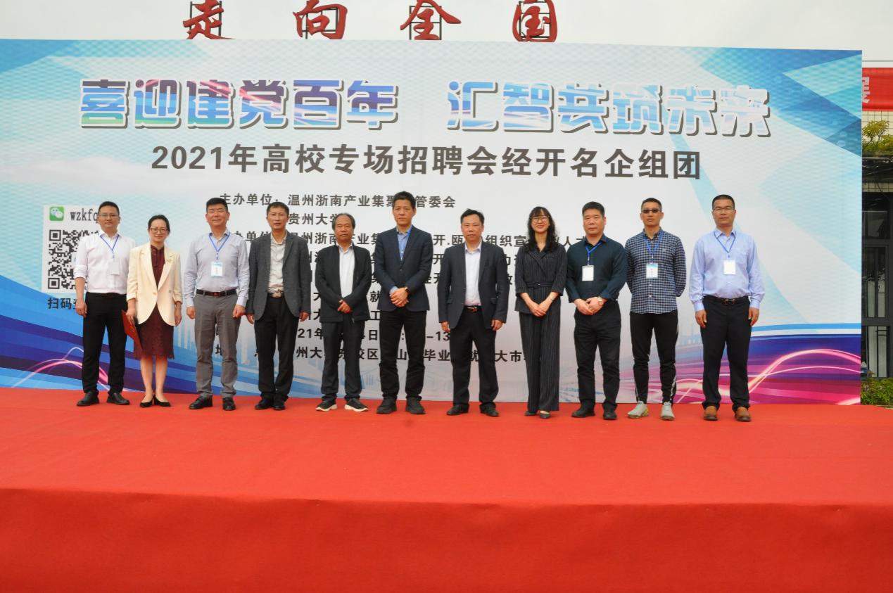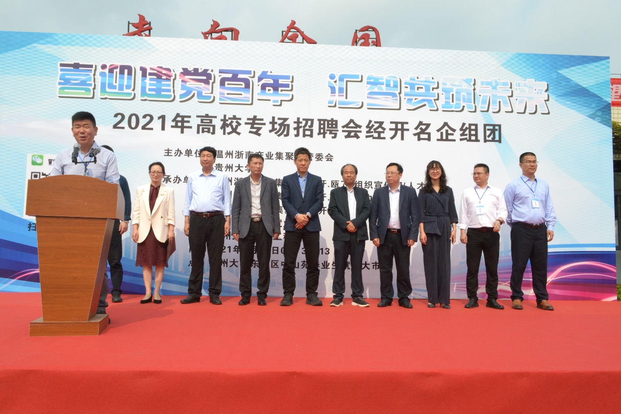 啟動儀式上,貴州大學招生就業(yè)處主要負責人王忠於致辭。他首先介紹了貴州大學及機械工程學院的相關情況,他指出,貴州大學是部省合建和“雙一流”高水平大學,機械工程學院擁有國家級和省級特色重點學科,具有現(xiàn)代制造技術教育部重點實驗室、全國高校實踐育人創(chuàng)新創(chuàng)業(yè)基地,是國家機械工程類培養(yǎng)了大量高層次人才。希望借助此次活動,浙南沿海先進裝備產(chǎn)業(yè)集聚區(qū)各企事業(yè)單位能在貴州大學招收到大量的優(yōu)秀人才。