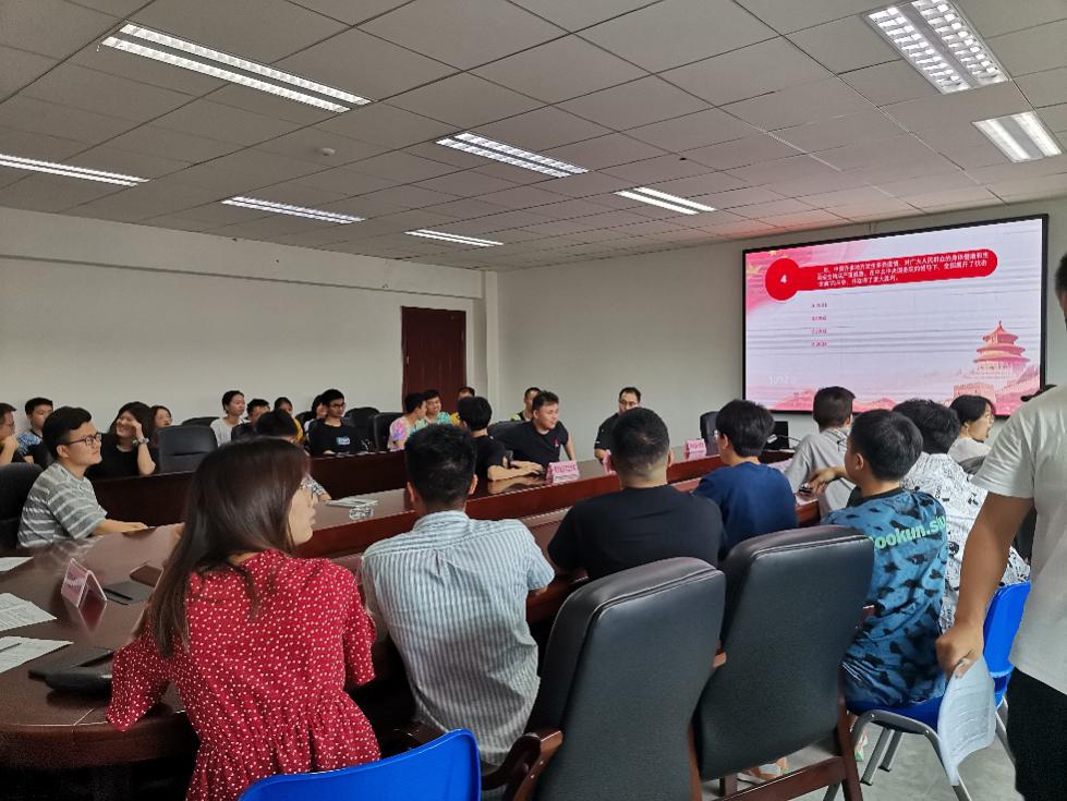 在準備階段,組織了全體研究生和本科生黨員開展了賽前學習。比賽現(xiàn)場分為必答和搶答兩個環(huán)節(jié)。在必答環(huán)節(jié)。經(jīng)過賽前對黨史知識的學習,各參賽支部需隨機回答五道黨史題來檢驗學習成果,并由工作人員現(xiàn)場核對答案,得出必答環(huán)節(jié)的占比成績。在搶答環(huán)節(jié)中,各支部五人為1組,搶答共30題,答對得分,答錯扣分。