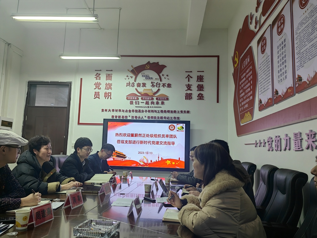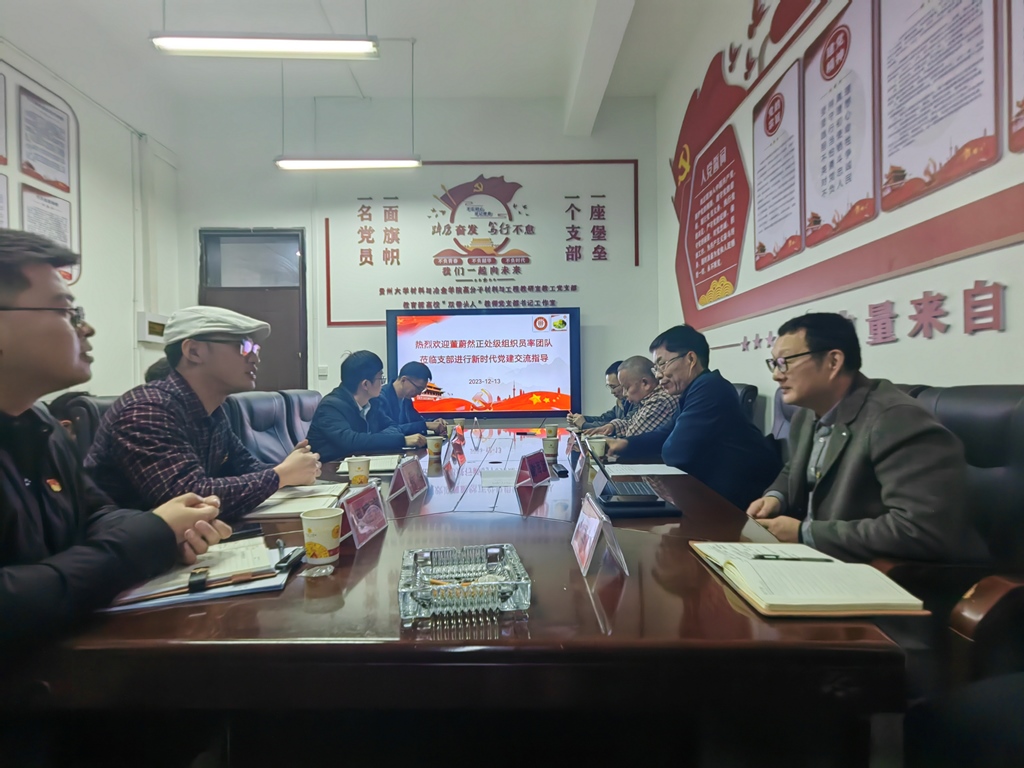 12月13日,貴州大學(xué)黨委正處級(jí)組織員董蔚然攜我支部支委成員與材料與冶金學(xué)院高分子材料與工程教研室教工黨支部開展黨建交流。材料與冶金學(xué)院黨委書記劉劍、正處級(jí)組織員熊玉竹以及高分子材料與工程教研室教工黨支部全體黨員參加活動(dòng)?;顒?dòng)由全國(guó)高?!半p帶頭人”教師黨支部書記工作室負(fù)責(zé)人、高分子材料與工程教研室教工黨支部書記謝海波主持。
