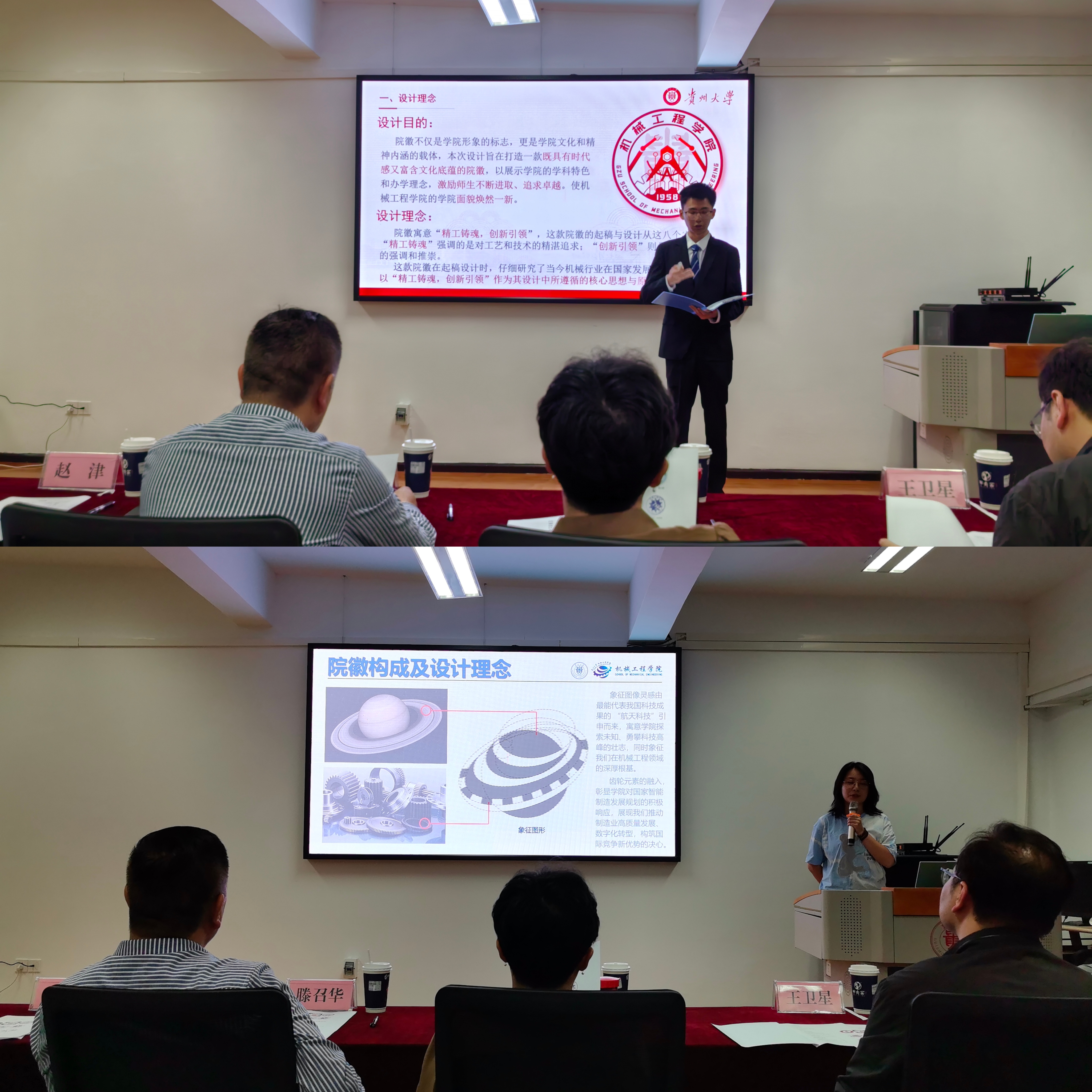 經(jīng)過初評、師生投票,進(jìn)入決賽的10個院徽作品創(chuàng)作者依次展示他們獨特的設(shè)計理念和創(chuàng)意,評委依次打分。