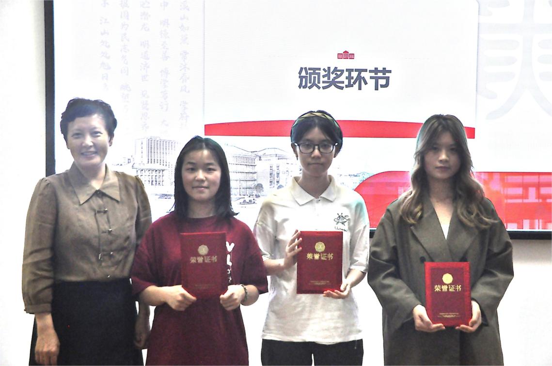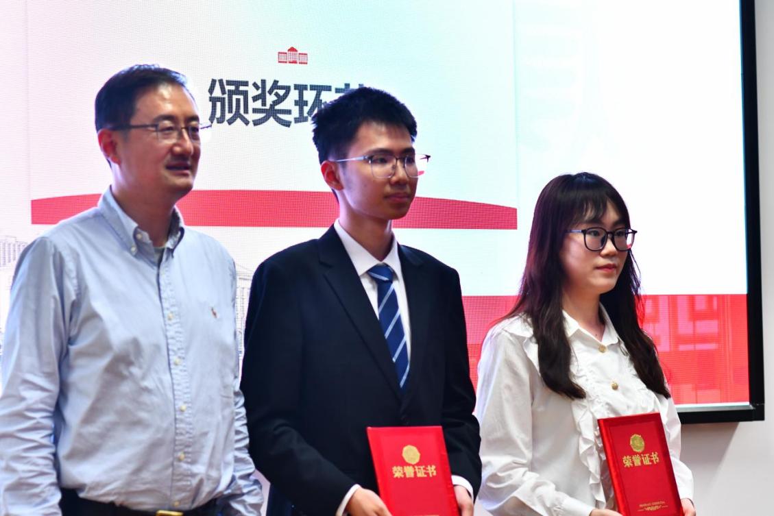 最后,領(lǐng)導(dǎo)為獲獎的同學(xué)頒發(fā)證書并合影留戀。