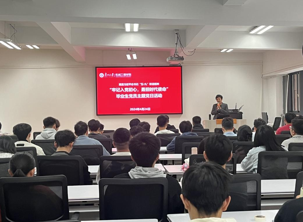 根據(jù)學院黨委統(tǒng)一安排部署,2024年4月24日學院研究生科組織即將畢業(yè)研究生黨員開展“重溫習近平總書記‘五·九’講話精神,牢記入黨初心,勇?lián)鷷r代使命”主題黨日活動,在畢業(yè)研究生黨員中深入開展“畢業(yè)前最后一堂黨課”活動。學院正處級組織員董蔚然、研究生黨建負責人田森老師、研究生兼職輔導員肖祥美老師、機械工程學院和現(xiàn)代制造技術(shù)教育部重點實驗室2024屆全體畢業(yè)研究生黨員參加活動。