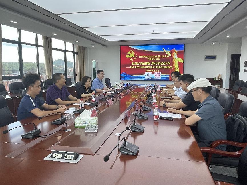 為深入學(xué)習(xí)貫徹習(xí)近平新時(shí)代中國(guó)特色社會(huì)主義思想,貫徹落實(shí)學(xué)校黨委關(guān)于開展黨建引領(lǐng)創(chuàng)新的工作要求,2023年8月12日,機(jī)械制造及其自動(dòng)化教工黨支部曾與國(guó)藥集團(tuán)同濟(jì)堂(貴州)制藥有限公司開展主題為“黨建引領(lǐng)創(chuàng)新,深化校企合作”的深化產(chǎn)學(xué)研合作交流主題黨日活動(dòng)。國(guó)藥集團(tuán)同濟(jì)堂(貴州)制藥有限公司總經(jīng)理、黨委書記朱鶴、副總經(jīng)理孫宜春、信息化主管牛明、工程部主管舜,機(jī)械制造及其自動(dòng)化教工黨支部書記周鵬及相關(guān)黨員同志出席本次校企合作總結(jié)交流活動(dòng)。