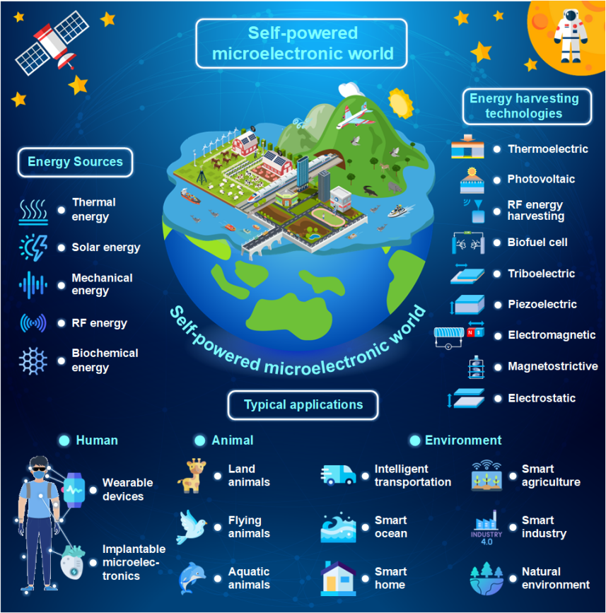人工智能和物聯(lián)網(wǎng)正在推動(dòng)基于自供電技術(shù)的微電子器件的快速發(fā)展,深刻影響著世界的發(fā)展進(jìn)程。本文全面回顧了自供電微電子領(lǐng)域的最新進(jìn)展、挑戰(zhàn)和未來發(fā)展方向。綜述了人體可穿戴設(shè)備、動(dòng)物可穿戴設(shè)備和環(huán)境監(jiān)測傳感器的總體研究進(jìn)展。此外,本文還詳細(xì)概述了可用于自供電微電子的環(huán)境微能源類別,以及能量收集技術(shù)的原理和特征。從應(yīng)用角度出發(fā),全面總結(jié)了自供電微電子技術(shù)在人體可穿戴設(shè)備(眼鏡、助聽器、口罩、背包、手表、腕帶、手套、外骨骼系統(tǒng)、鞋襪)、動(dòng)物可穿戴設(shè)備(陸地、飛行、水生)、環(huán)境監(jiān)測傳感(智能交通、智能海洋、智能家居、智能農(nóng)業(yè)、智能工業(yè)、以及自然環(huán)境監(jiān)測)。最后,針對自供電微電子器件的不足,提出了該領(lǐng)域的研究空白和未來的研究方向。