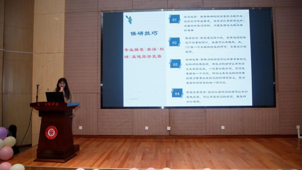 大會邀請材料成型及控制工程系保研學(xué)生王倩、考研學(xué)生韓池從選擇定位、計劃安排、學(xué)習(xí)方法等方面作升學(xué)經(jīng)驗分享,希望學(xué)弟學(xué)妹研途不迷茫,持之以恒做好備考準(zhǔn)備,全力以赴戰(zhàn)到考研最后一刻。