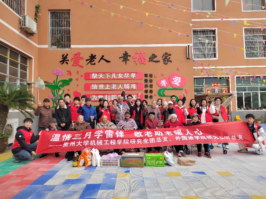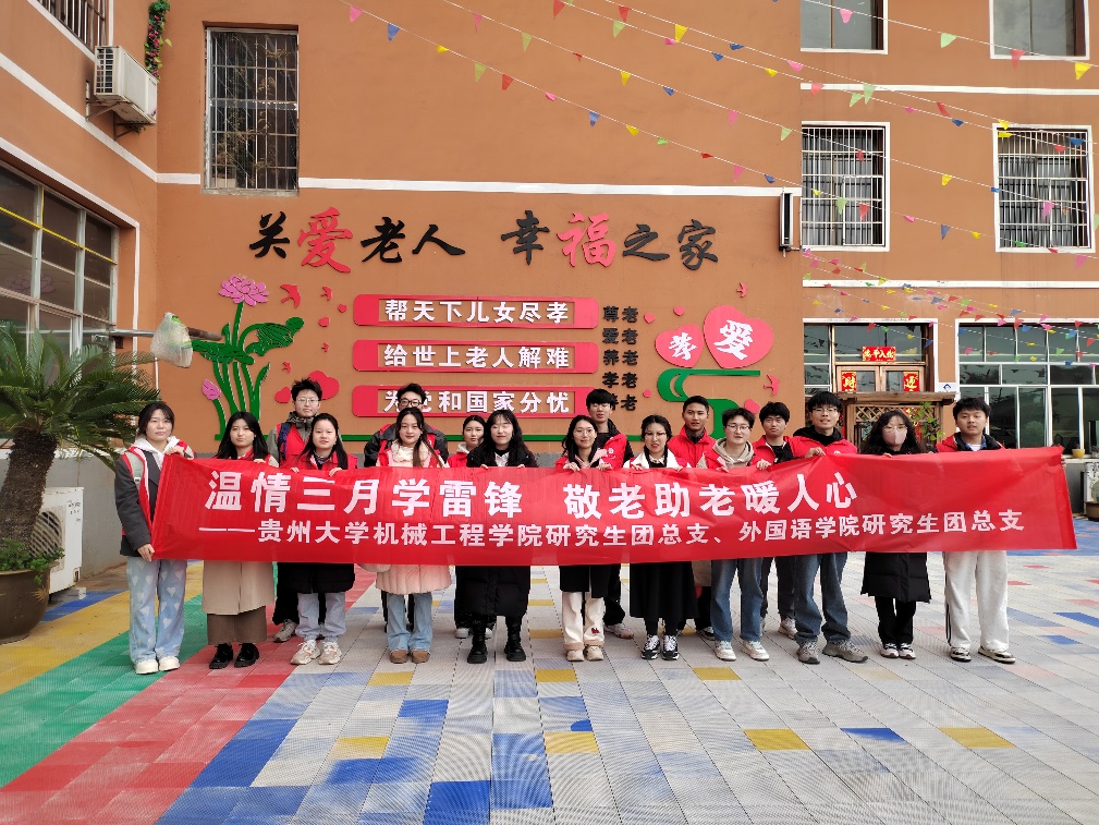 2025 年 3 月 30 日下午,貴州大學(xué)機(jī)械工程學(xué)院研究生團(tuán)總支、外國(guó)語學(xué)院研究生團(tuán)總支與花溪區(qū)幸福頤養(yǎng)中心攜手,共同開展了一場(chǎng)以弘揚(yáng)新時(shí)代雷鋒精神為主題的志愿服務(wù)活動(dòng)。此次活動(dòng)旨在引導(dǎo)廣大青年學(xué)生積極踐行雷鋒精神,以及 “奉獻(xiàn)、友愛、互助、進(jìn)步” 的志愿精神,通過實(shí)際行動(dòng)紀(jì)念雷鋒,深入弘揚(yáng)雷鋒精神,大力宣傳其在新時(shí)代的重要意義,并樹立學(xué)雷鋒先進(jìn)典型,讓雷鋒精神在新時(shí)代持續(xù)傳承、璀璨奪目。