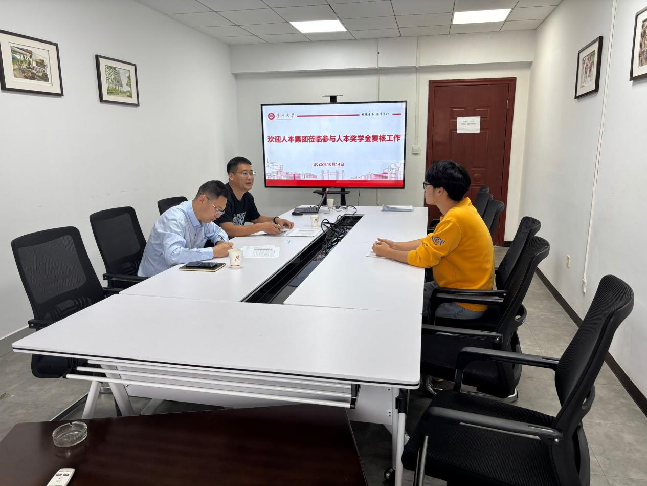貴州大學機械工程學院完成“人本滴水獎學金”初次評選工作后,人本集團相關負責人于2025年10月15日入校開展面談審核,標志著2025-2026學期該獎學金評定工作順利完成。